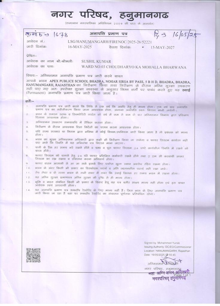 Valid Fire Safety Certificate issued by the competent Authority